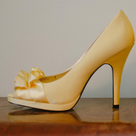 زوج من المرأة البيج زقزقة اصبع القدم بكعب الصنادل مع تصميم الأزهار.